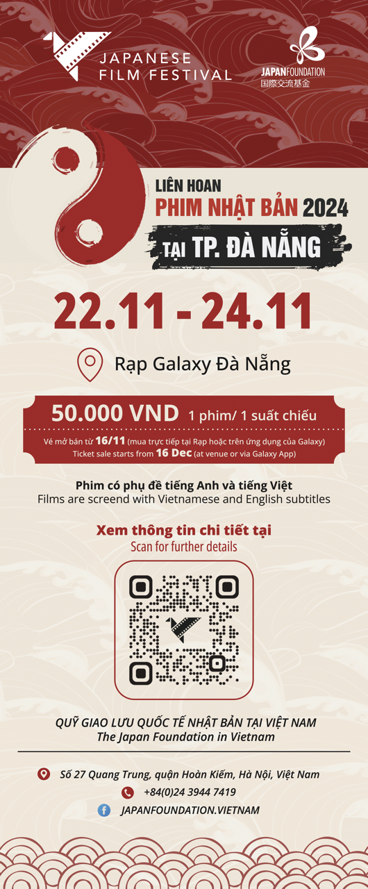 LIÊN HOAN PHIM NHẬT BẢN (JFF) do Quỹ Giao lưu Quốc tế Nhật Bản (The Japan Foundation) tổ chức đã quay trở lại Việt Nam với phiên bản thứ 16 chứa đựng nhiều yếu tố bất ngờ, mở ra một không gian điện ảnh độc đáo, sẵn sàng chào đón những người yêu điện ảnh đến khám phá và trải nghiệm.
